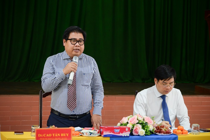 Đồng chí Cao Tấn Huy, Phó Bí thư Đảng ủy, Phó Hiệu trưởng Trường Đại học Tài chính – Marketing phát biểu tại Hội nghị