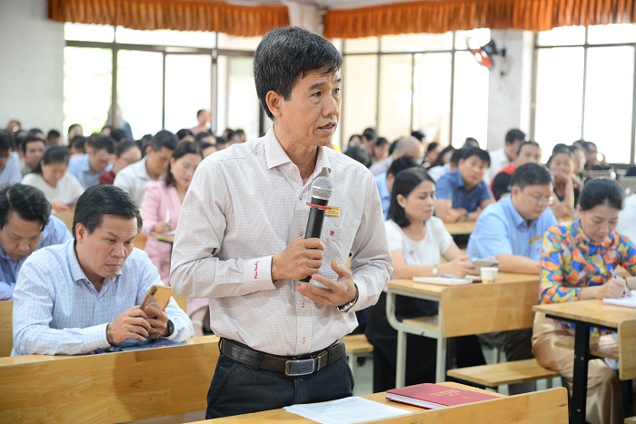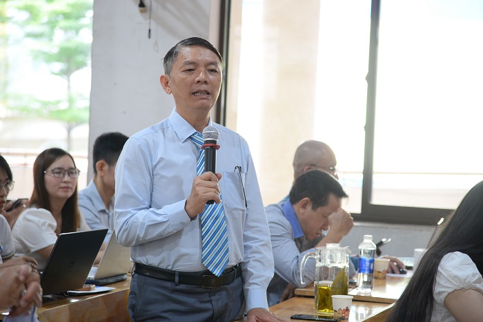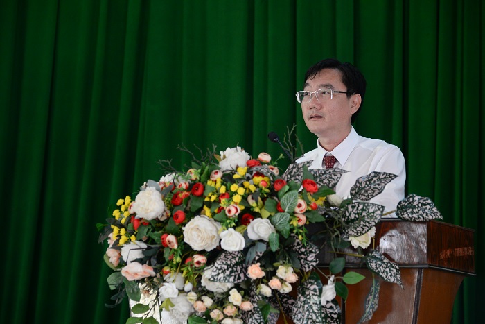 Đồng chí Nguyễn Xuân Hiệp, Bí thư chi bộ Khoa Thương mại và Du lịch, Nguyên Phó Bí thư Đảng ủy Trường nhiệm kỳ 2020 – 2025 phát biểu tại Hội nghị