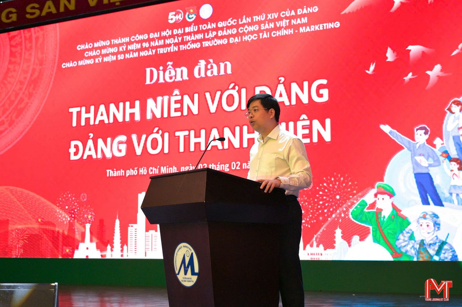 Sáng 02/02, được sự cho phép của Đảng uỷ Trường Đại học Tài chính - Marketing, Đoàn Thanh niên - Hội Sinh viên trường long trọng tổ chức Diễn đàn “Thanh niên với Đảng - Đảng với thanh niên” với chủ đề “Sắt son niềm tin với Đảng”, hướng đến chào mừng kỷ niệm 96 năm Ngày thành lập Đảng Cộng sản Việt Nam (03/02/1930 - 03/02/2026) và chào mừng thành công Đại hội Đại biểu toàn quốc lần thứ XIV của Đảng.